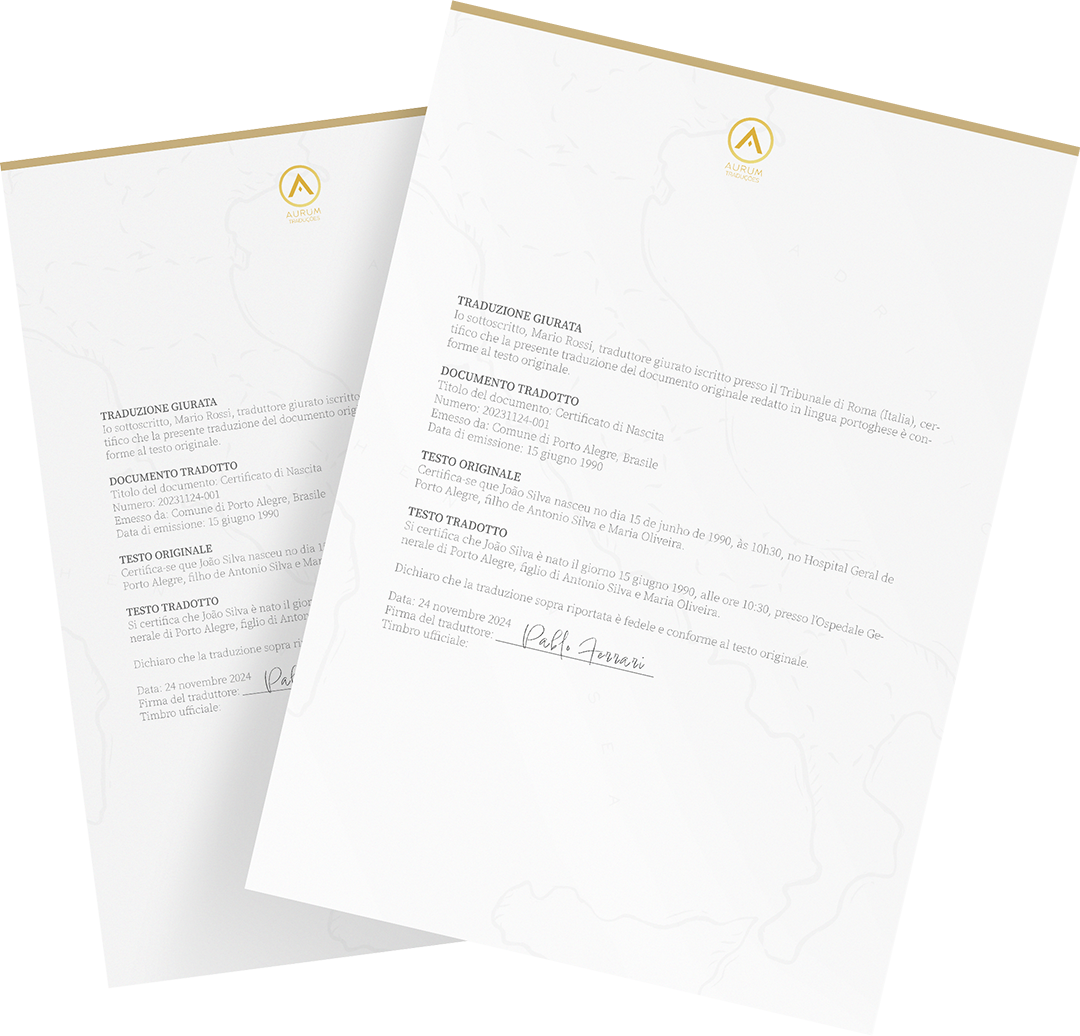 A Aurum Traduções, sediada em Caxias do Sul, é referência em traduções juramentadas para a língua italiana, conectando pessoas e negócios com precisão e profissionalismo. Com uma equipe experiente e altamente qualificada, somos especialistas em atender demandas relacionadas a processos de cidadania italiana e documentos oficiais.